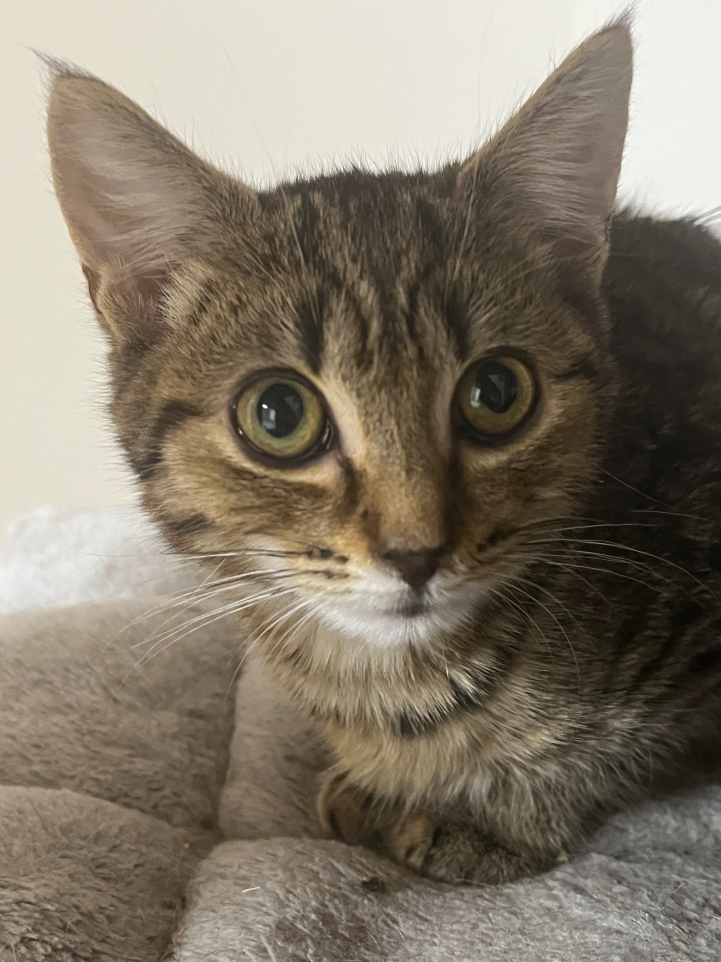 Kočička je stará 10 měsíců, je maličká, léčbou jsme jí bohužel trochu zastavili růst.