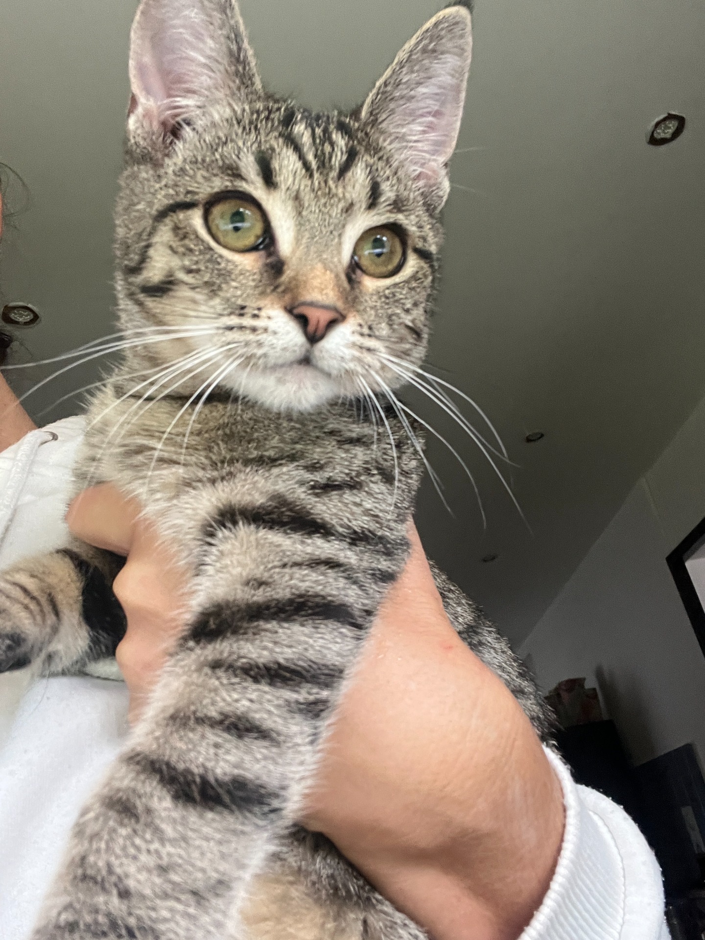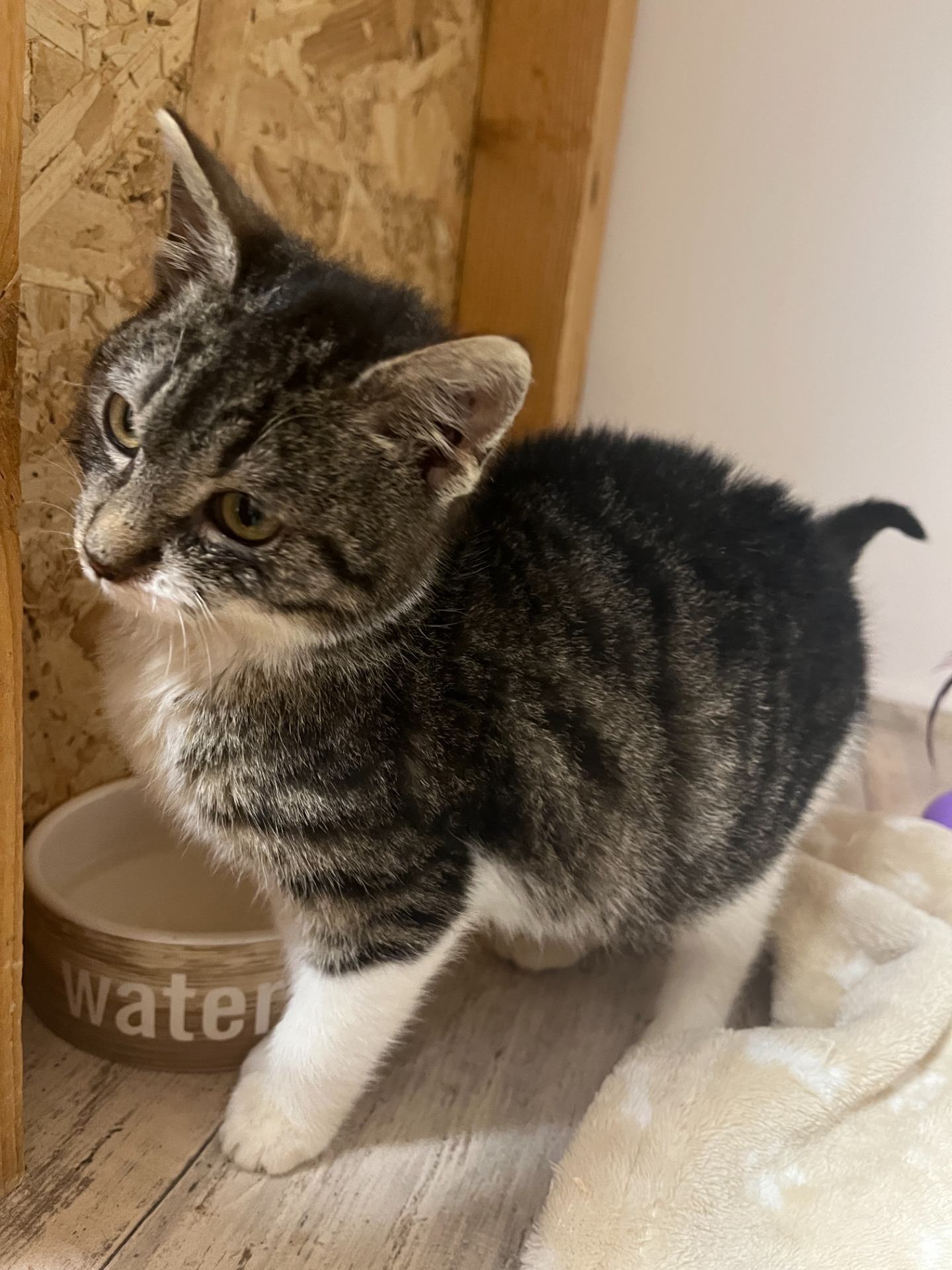 Asi 6 měsíční kocourek, kterého lidi nechali na klinice poté, co se vrátil zvenku se zlomenou packou. Majitelé nechtěli uhradit léčbu a kocourka chtěli nechat utratit.