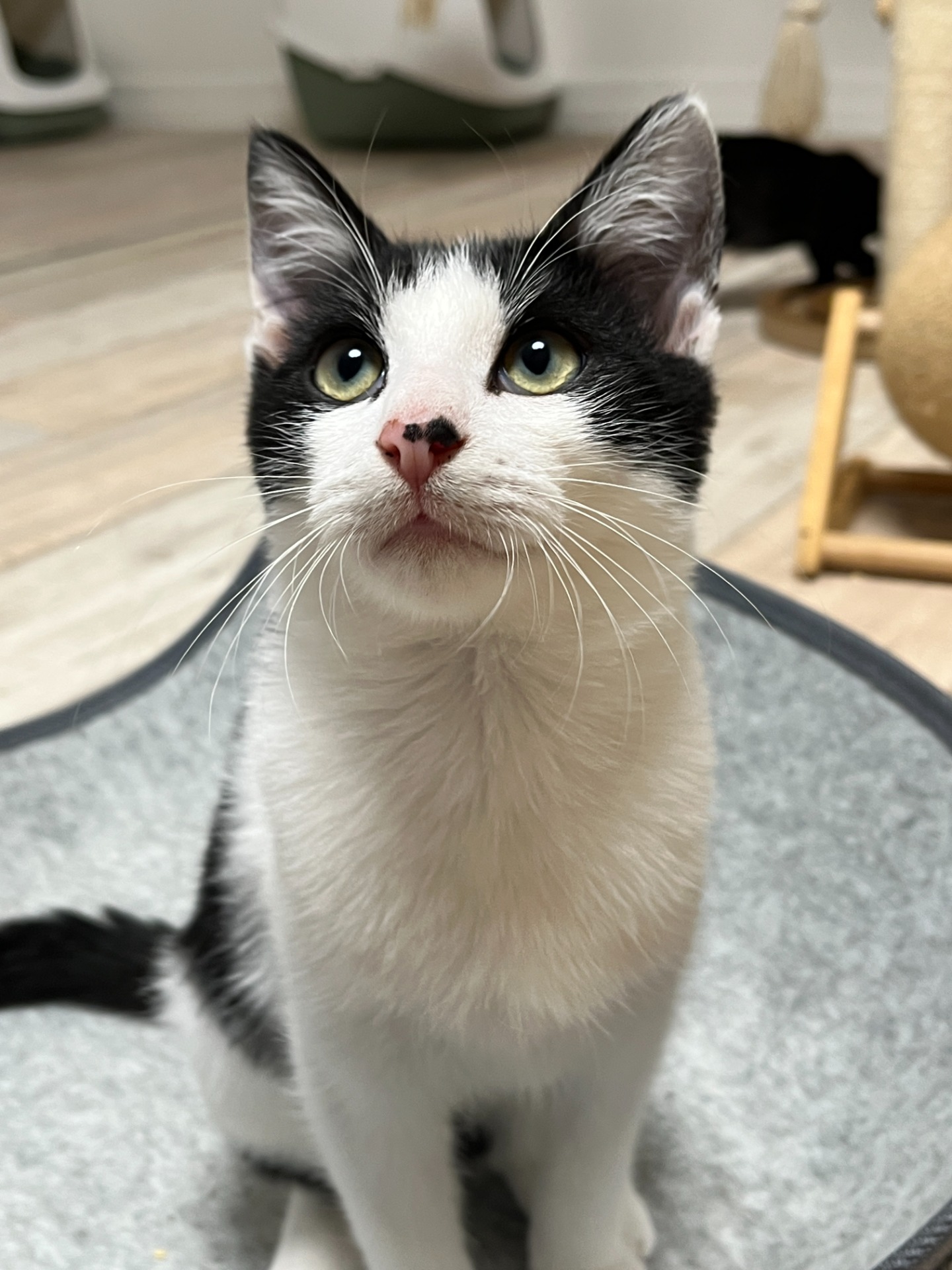 Moc hodný k lidem i ke kočičkám, veselá povaha, pořád hravé kotě.