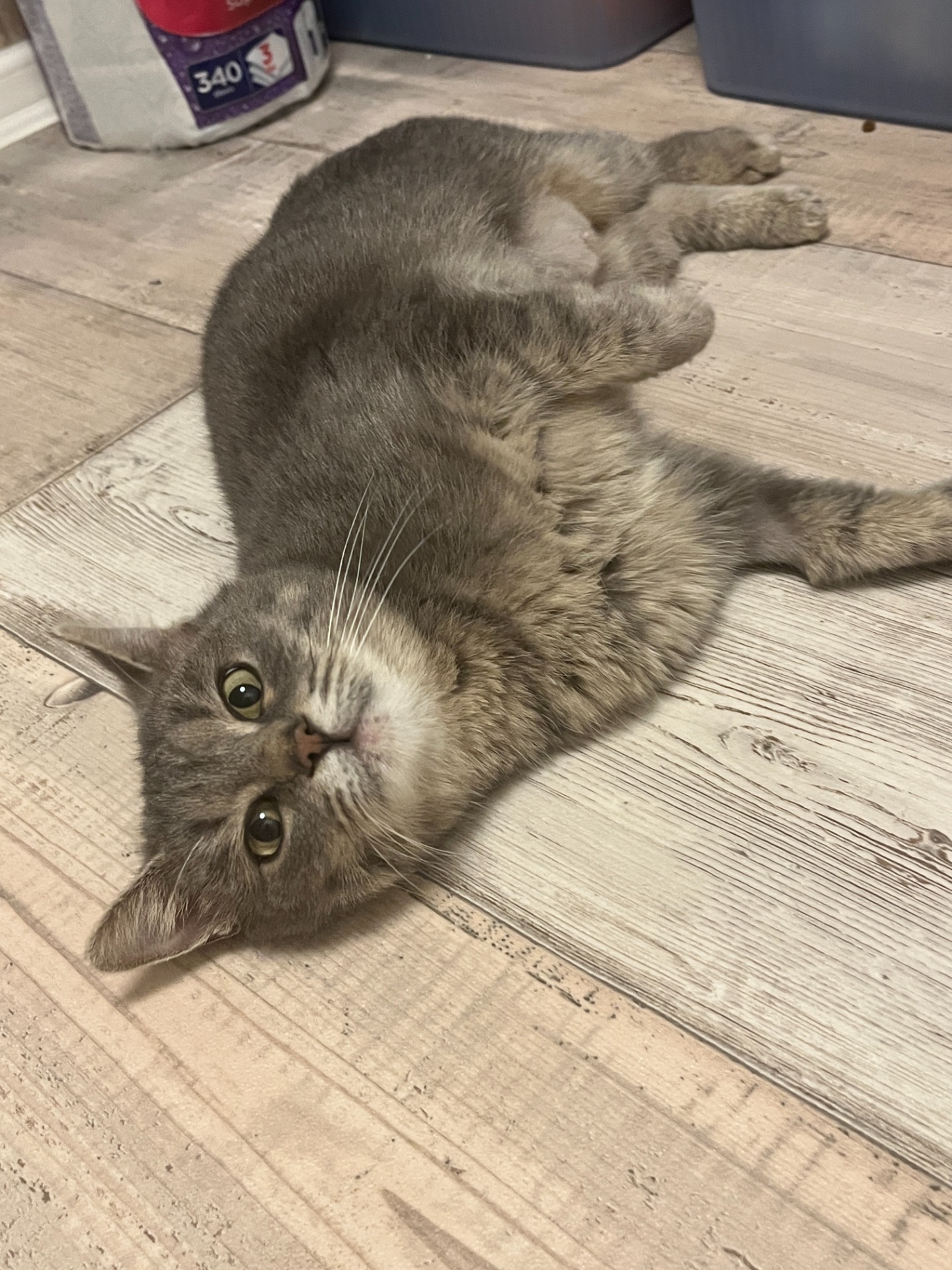 Asi 3 měsíční koťátko zachráněné na poslední chvíli v těch největších mrazech. Hladová a velmi nemocná holčička. U nás se dala rychle do kupy, má krátké nožky a krátký ocásek, proto myška :-) Je to taková roztomilá prdelína, vděčná za teplo a trochu jídla, potřebuje jen trošku domazlit.